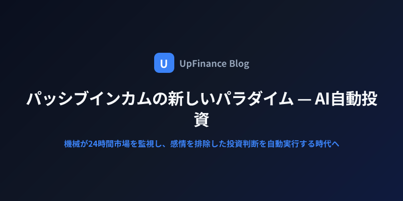 パッシブインカムは一朝一夕には作られませんが、AIの助けを借りることで、より速く、より効率的に構築できます。 これがパッシブインカムの新しいパラダイムです。UpFinanceとともに、あなた自身のパッシブインカムシステムを構築してみてください。