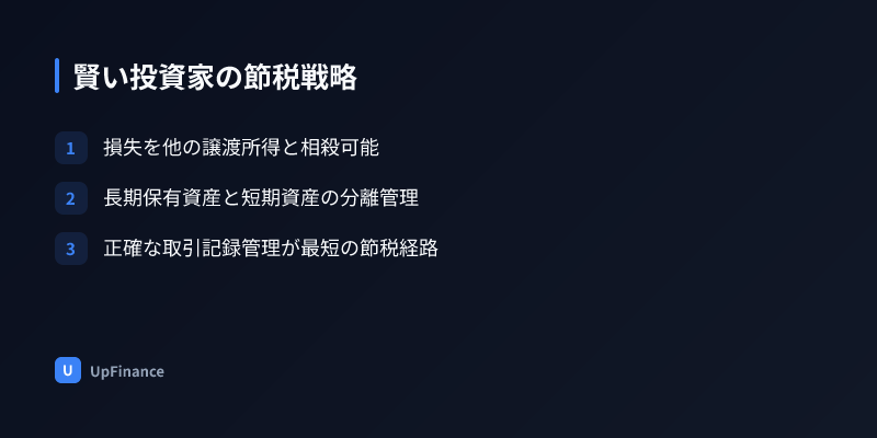 ただし、税回避ではなく正当な投資損失として認定を受けるには、取引記録が明確である必要があります。