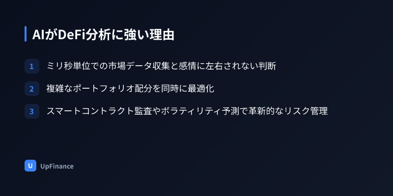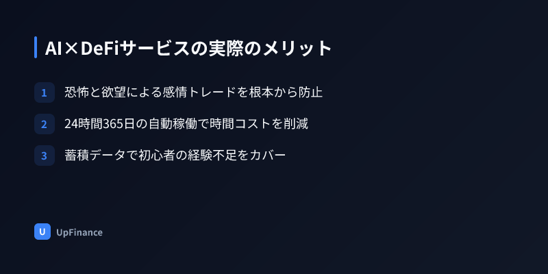 DeFiリターン最適化の未来は、すでに動き始めています。 UpFinanceのようなAIフィンテックサービスが、この領域を牽引しています。